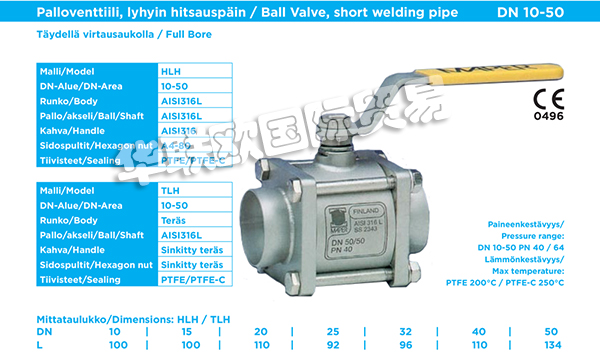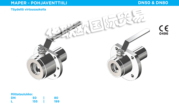 MAPER OY生產(chǎn)用于工業(yè)應(yīng)用的高品質(zhì)三段式球閥。MAPER閥門適用于需要高流量和緊密關(guān)閉的應(yīng)用場(chǎng)合。MAPER閥門是需要最高可靠性,功能性和可互換性的應(yīng)用的理想選擇。MAPER閥門廣泛應(yīng)用于造紙,食品,釀造,能源等領(lǐng)域。MAPER閥門主要材質(zhì)有不銹鋼,碳鋼,鋁合金等。