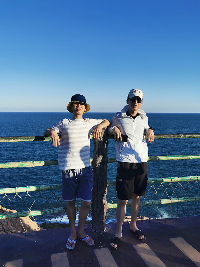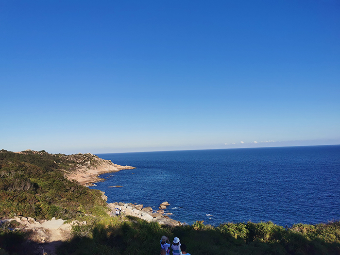 稍作休息后,下午3點(diǎn)多,我們游覽了觀景臺(tái)。這里三面環(huán)海,風(fēng)景如畫。惠東的雙月灣,由兩片半月形灣畔形成,而這一壯闊美景,只有登頂大星山的觀景臺(tái)才能看到。駐足在雙月灣觀景臺(tái)的最前端,極目遠(yuǎn)眺,藍(lán)天、白云、大海,水天相接,令人心曠神怡。