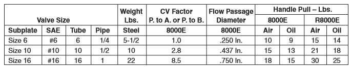 PARKER液壓單向閥8000E系列可以2,3和4向手動切換,閥體零泄漏,可用于潤滑的空氣,液壓油,和水。閥設計需要低驅動扭矩,并且可以在負載必須保持長時間和困難的條件下的應用中。8000E系列閥具有高污染的耐受性和長壽命,閥設計需要低驅動扭矩,面板式安裝標準。